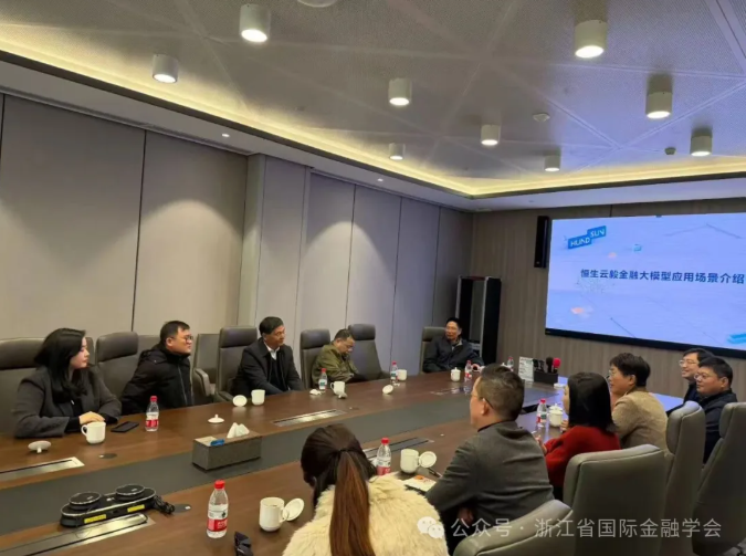11月28日上午,浙江省国际金融学会副秘书长夏玮蔓率领第九期浙江国际金融学术沙龙暨“十五五”发展规划与浙江高质量发展研讨会部分参会代表走进上市公司恒生电子,开展“走进恒生电子|聚焦‘十五五’与高质量发展”实地调研活动。